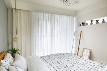 朴实温和的北欧风格四居室卧室窗帘装修效果图