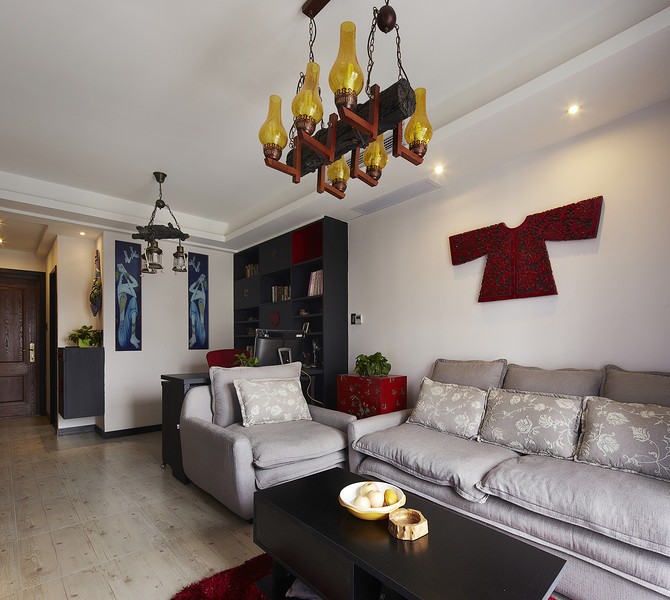 玲珑剔透的古玩配件,复古造型的茶几,实木制成的圆形凳子都具有古典气息。配以雕花装饰,更象征高洁的情操。整个客厅不仅简约明了,更给人一种高雅之感。