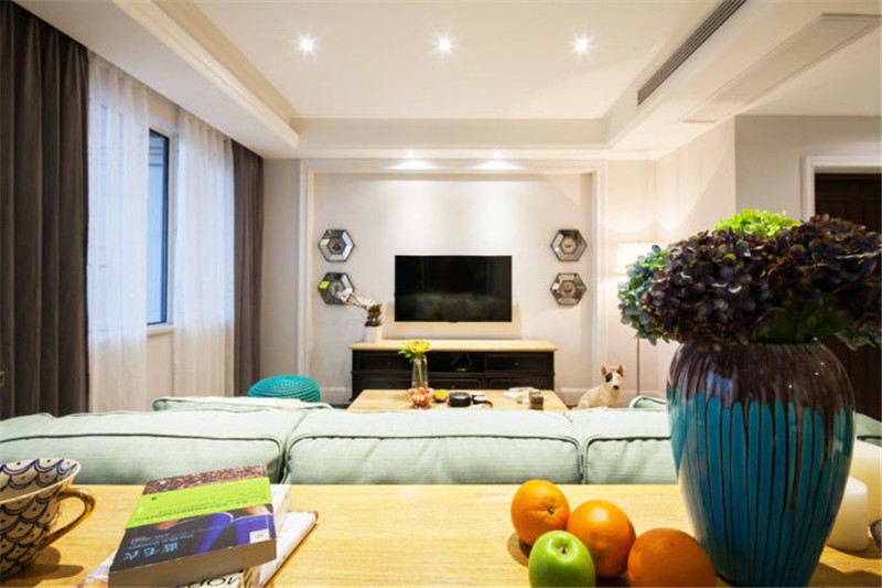 • 清新韩式田园风格小户型客厅背景墙装修效果图